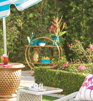 And a cart like the Halsted can keep everything looking orderly even if the party is more of a playful affair. Glasses, bottles, napkins and even a way to bring fresh ice to guests (we love the use of our gold, pineapple-shaped ice bucket). Cheers!