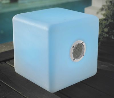 Put on your favorite summer playlist with our poolside Groove Cube—it’s Bluetooth-enabled, so you connect with your smartphone or other mobile device. One remote controls two 5-watt speakers and six glowing color options. 8″ Groove Cube is completely waterproof and floats in our Beverage Caddy; 12″ is water-resistant.