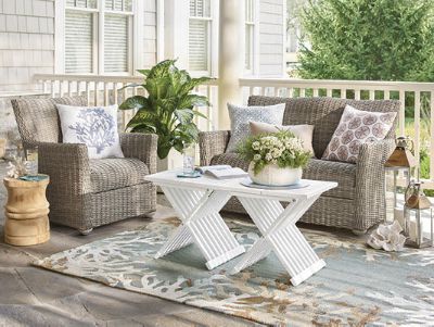Want to know the secrets to the style? The designers at Grandin Road are here to help. We started with a 12 ft. x 14 ft. space (on one really great porch) and just two pieces from our Simsbury Outdoor Seating Collection. From there, we selected outdoor accents to create three distinctly different styles. See the looks we created with front porch décor and how easy it could be for you.