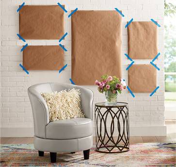 Armed with painters’ tape, tape the corresponding sheets of paper on your wall to replicate the arrangement you have on the floor. This is your real-life on-the-wall gallery guide.