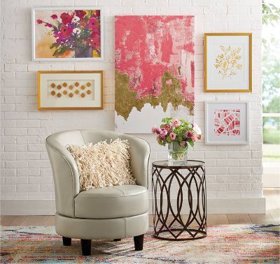 Thanks for the feedback! While this post provides tips on how to organize and hang pieces within a gallery wall, we certainly don’t mean to limit your options regarding the actual artworks you include. The sky is the limit! If pink and gold aren’t your thing (as shown), feel free to peruse our online gallery for more ideas: https://www.grandinroad.com/wall-art/. Not feeling comfortable mixing on your own? Check out the collections we’ve curated for you, including Study of Dog Wallart, Wallis Artwork and Rosemund Collection. Hope this helps!