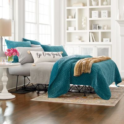 Bedding. So comfy and soft, velvety bedding makes you understand why luxurious fabrics make good sense, too. Our Chevron Velvet Collection (shown above) and our Nora Quilt look amazing draped languidly over your bed, and keep you cozy. A welcoming idea for guest spaces, too.