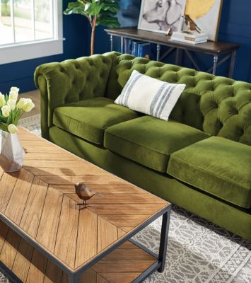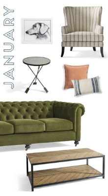 WT: The London Sofa is an absolute knockout in this shade of Jade green. You can’t go wrong with a chesterfield when looking to create a classic ‘will-never-go-out-of-style’ kinda look. Love! One of my favorite picks for this space was also the Oliver Accent Table because the vintage-style feathered arrow legs provide subtle detail to the room.