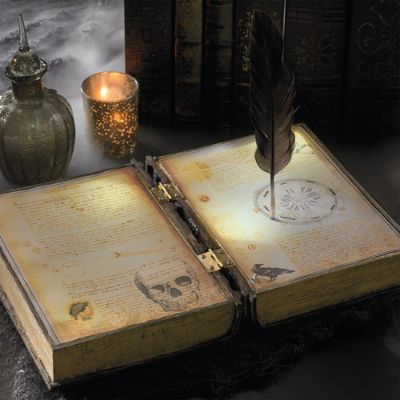 Creating individual moments of musical and animated features gives your decorations a fun flow that leads visitors from one spooky corner to the next. Placing our motion-activated Animated Writing Spellbook next to the punch bowl will also serve up a witch’s incantation recited to a haunting soundtrack.