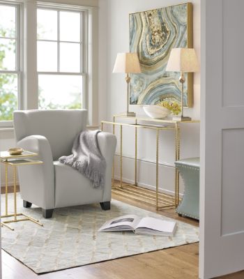 1. Glossy gold treasures. Metals (polished gold tones, silver tones, or antiqued pewter finishes on iron or brass) are bringing new luxury and elegance to rooms. New gold tone side tables in modern sculptural shapes have the power to alter the way rooms are perceived and define seating areas. A casual entertaining space is instantly more interesting when refreshed with even a single gold accent. A gold tone lamp with a smooth rounded or crisp “pleated” metal shade would be a perfect example of this metallic trend pushed to a sculptural, contemporary level. Paired with the year’s airy tones of serene blue and rose pink, gold and other metallic tones glow with warmth.